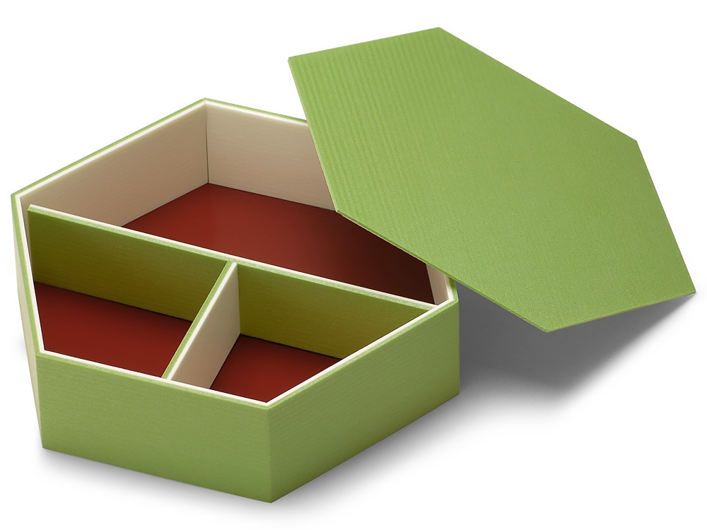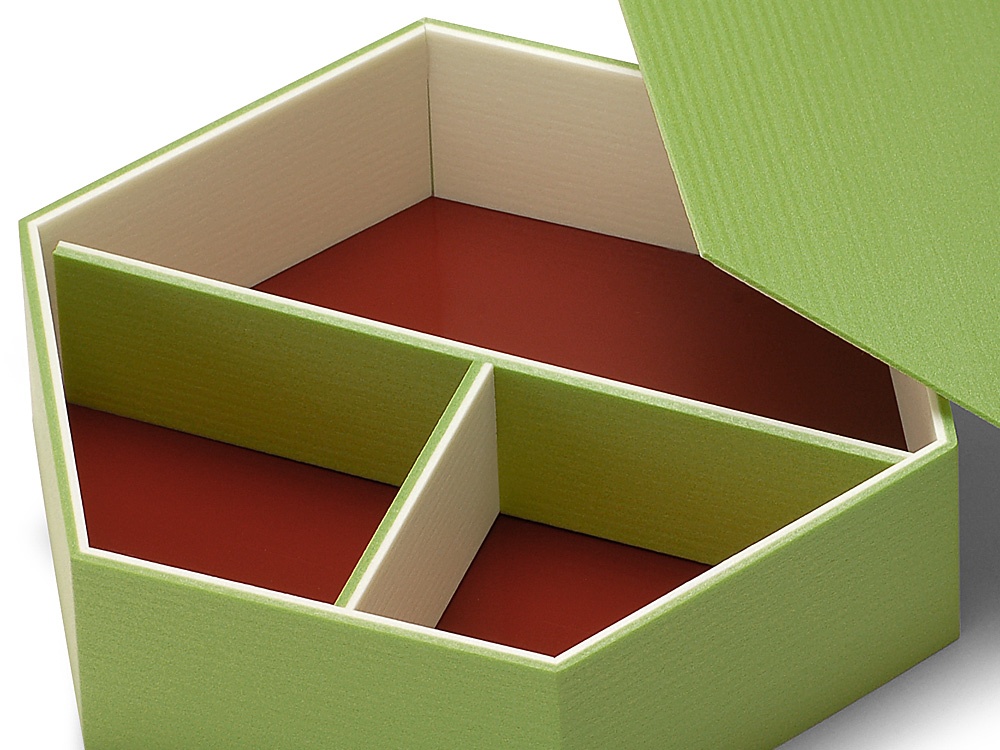 - 00-12114-470 ユニ折箱 色かさね 六角弁当 抹茶【包】の代替商品です。底の材質が変更になりました。