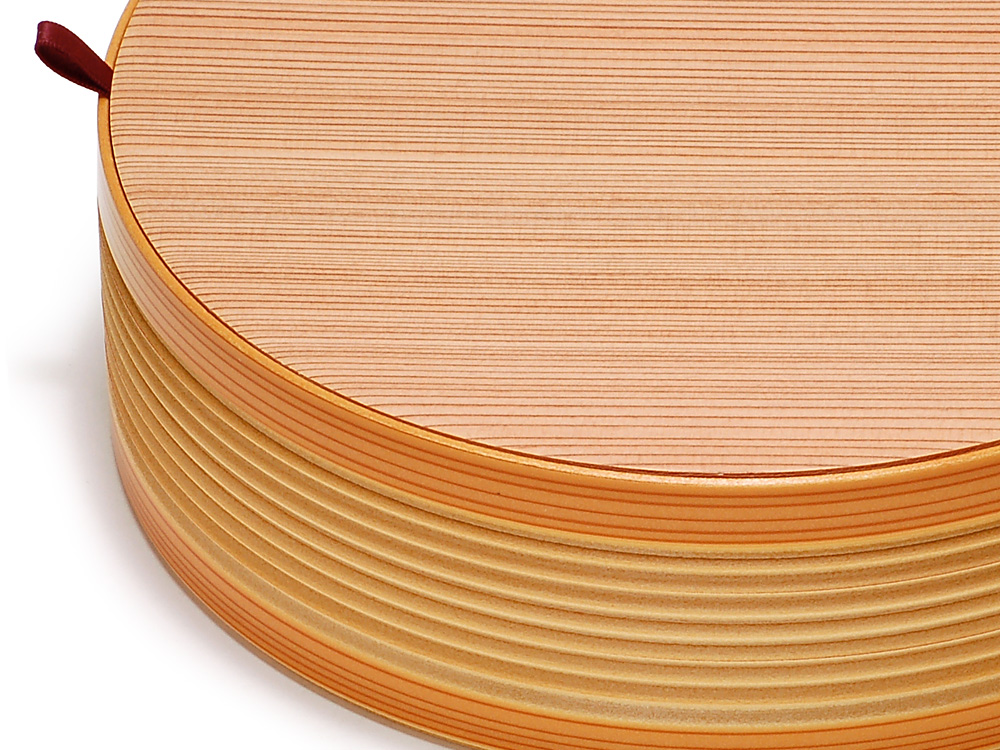 正倉院を曲物にしました。和やかに円満に和みを感じる懐かしい円形のお弁当箱。