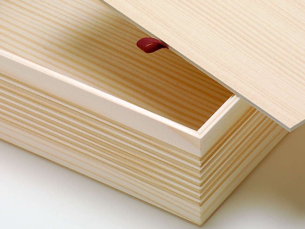 蓋は反りを避けるため、木目柄プリントの厚紙を使用しています。