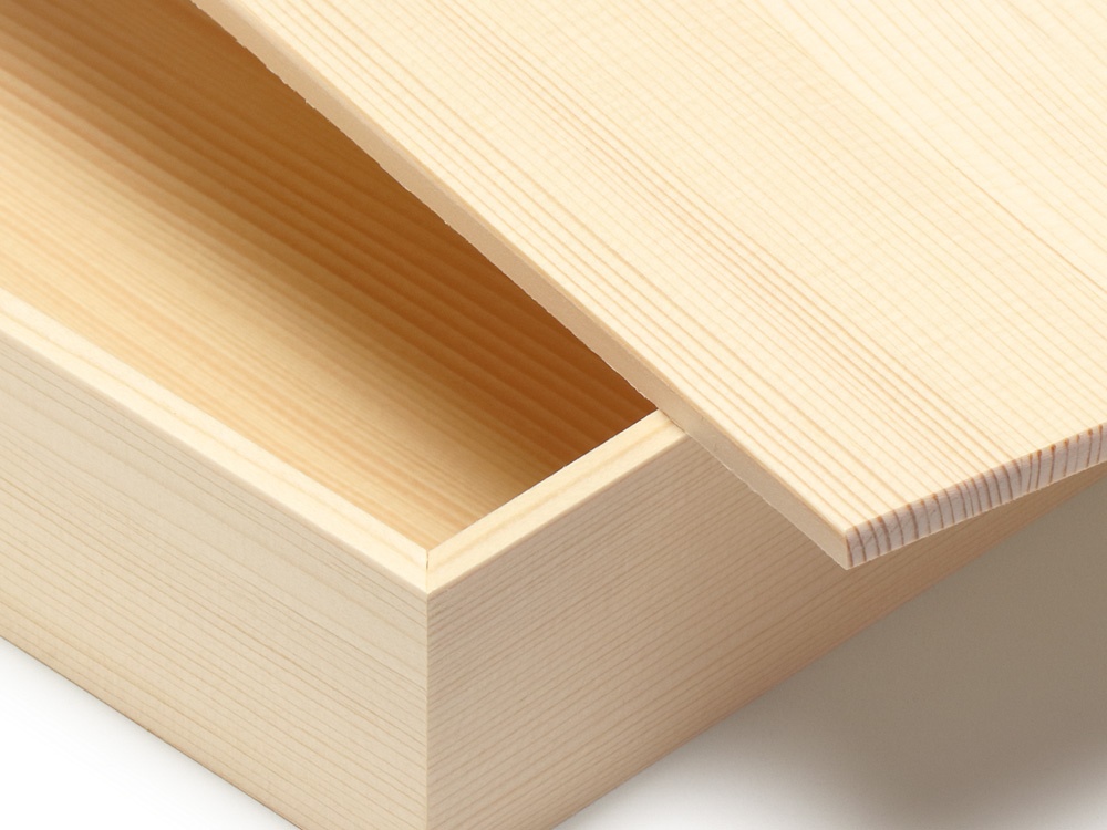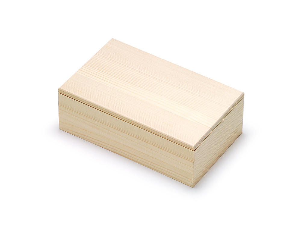 清々しさを感じる白松材を使った木箱です。蓋と本体枠に6mm厚の無垢材を使っているので、重厚感があります。