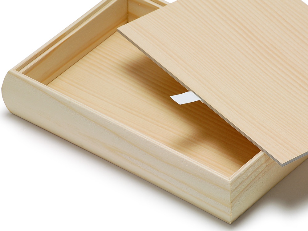 蓋は反りを避けるため、木目柄プリントの厚紙を使用しています。