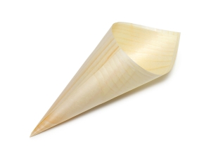 薄い経木を丸めてアイスクリームコーンのように仕上げた容器です。サイズ違いで豊富に揃えました。専用スタンドも販売しています。