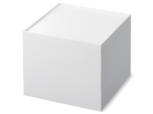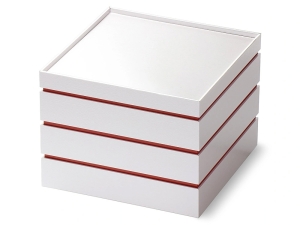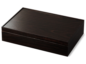 紙を使った重厚でシャープな造りのおせち重箱。重厚な漆器風、木目やモダンな白など、サイズも豊富にご用意しています。