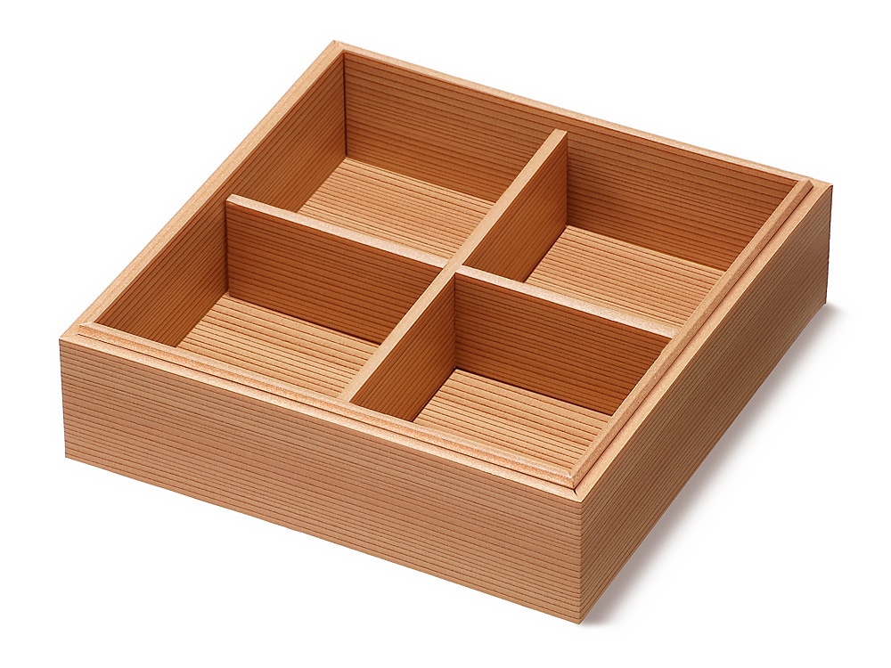 光悦杉印籠に合わせた同素材の仕切です。勝藤屋オリジナルのP製のぞき、中皿、敷紙などと一緒にお使いいただけます。