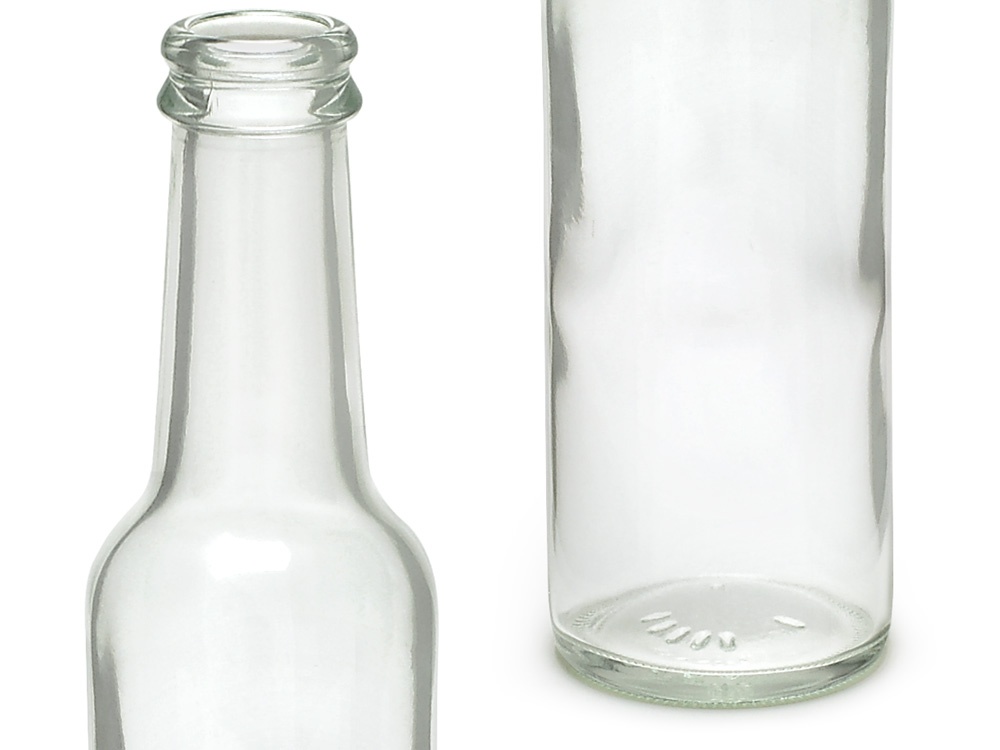 本体と、ワンタッチで開けられる丸穴タイプのヒンジキャップがセットになったガラス瓶です。