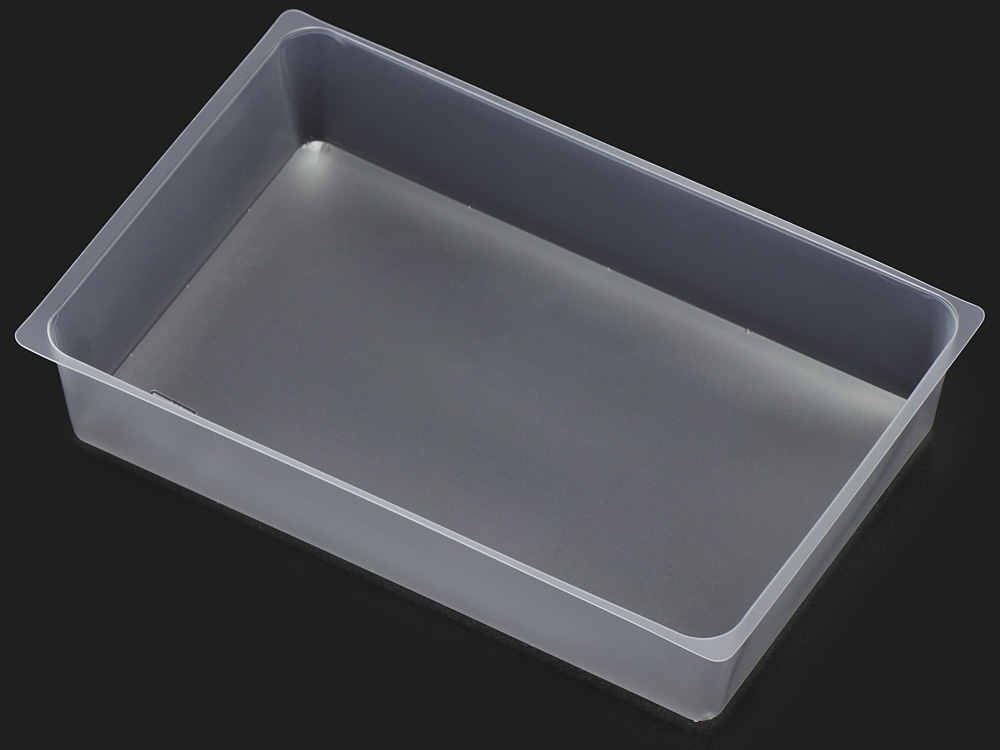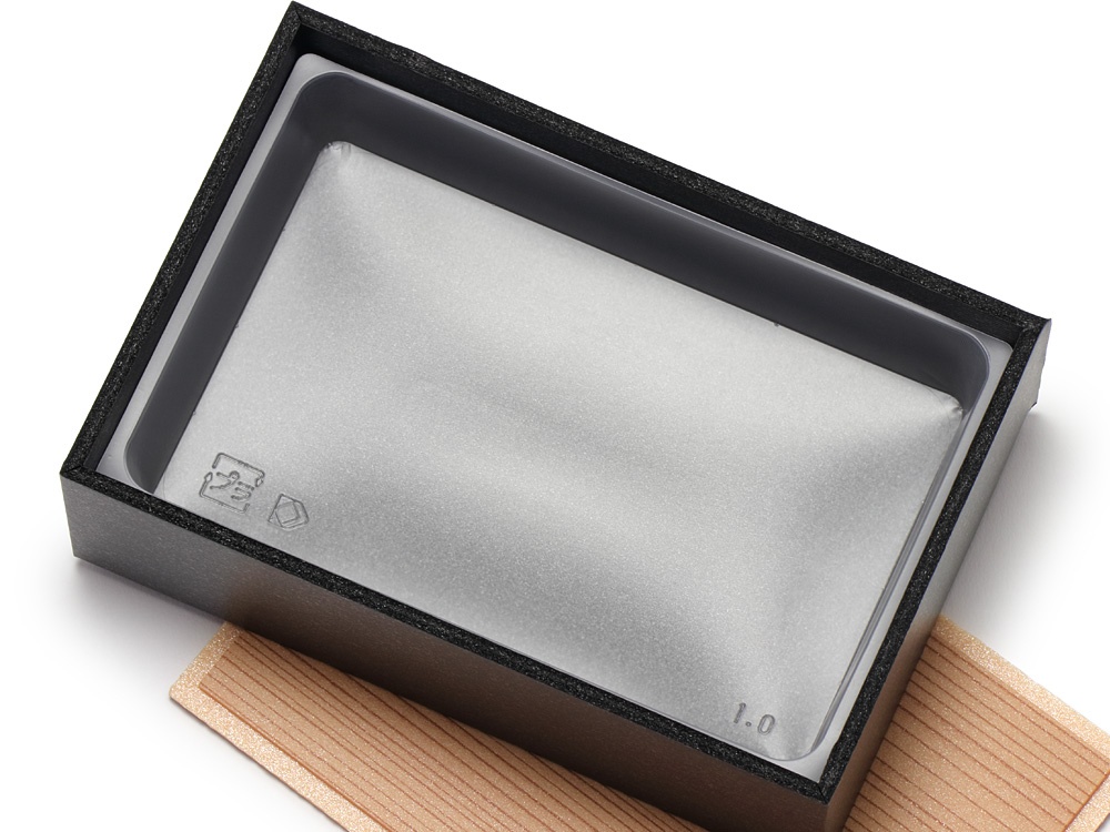 1合サイズの折箱に合わせたトレーです。汁気、タレなどを含む料理などにお使いください。透明タイプに比べ耐熱性が高く、熱々のごはんを入れても変形しにくくなっています。