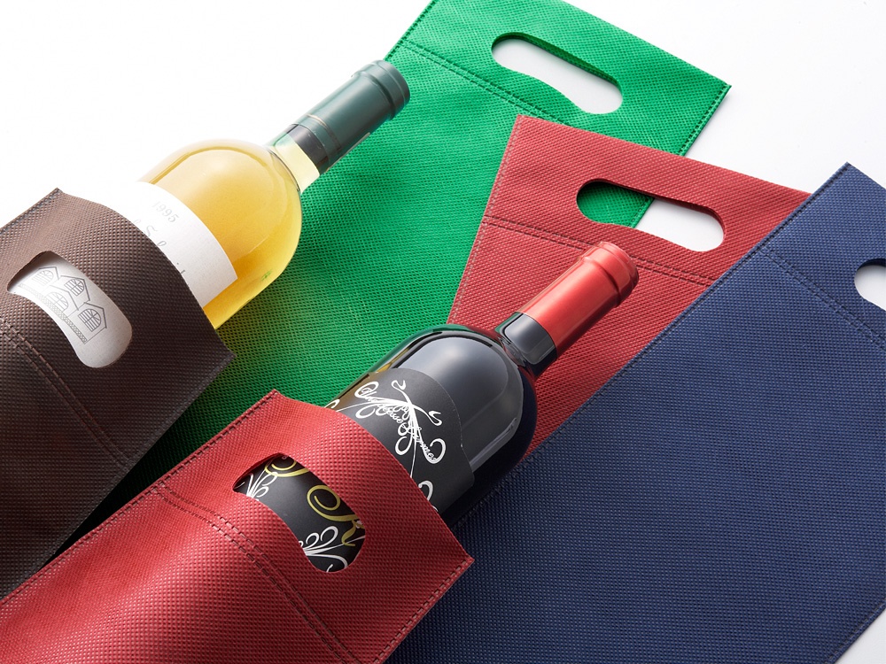 ワインや日本酒などの販売の際に役立つ不織布素材のボトルバッグです。