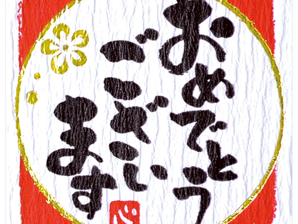 和紙のような手触りの良いクレープ紙に、味のある手書き風の文字と金箔押加工を施しています。