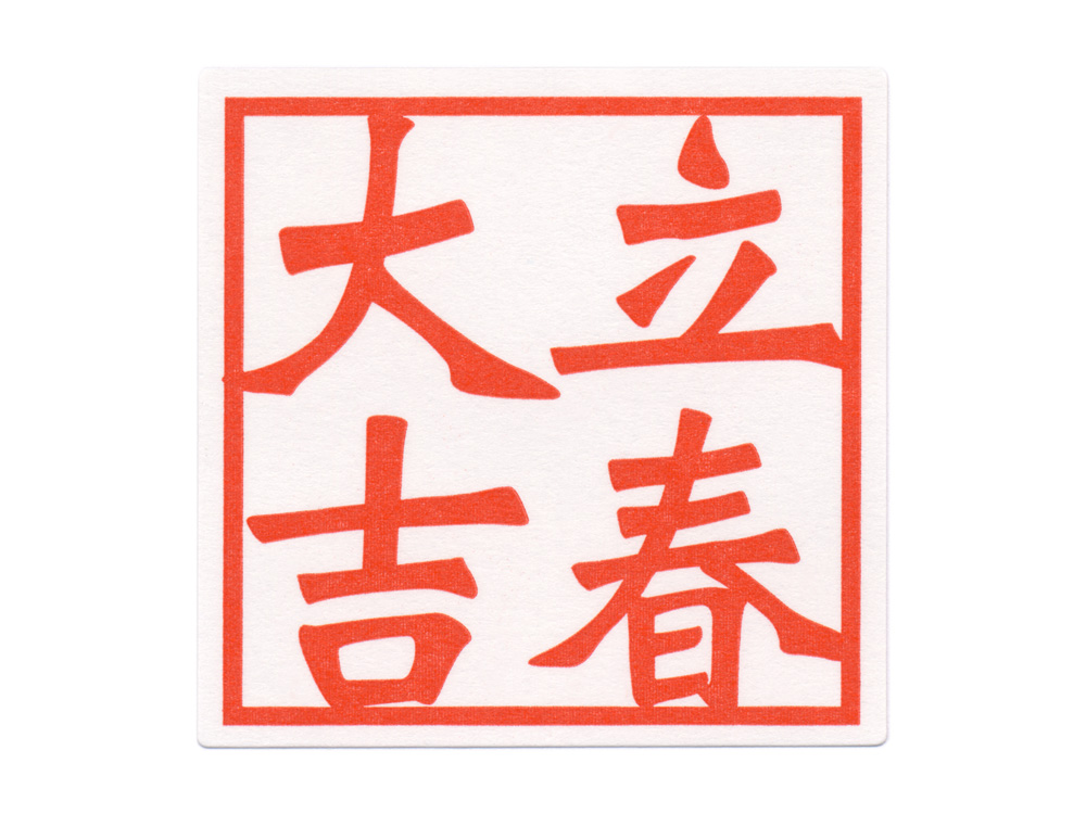 「立春大吉」の文字を落款風にデザインした、ワンポイントに使いやすいシールです。
