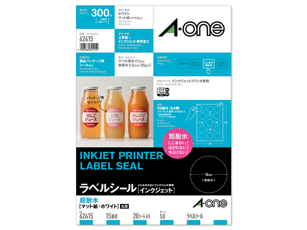 ラベルシール 超耐水マット紙 A4 15面 丸型