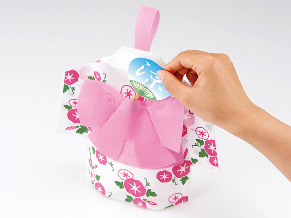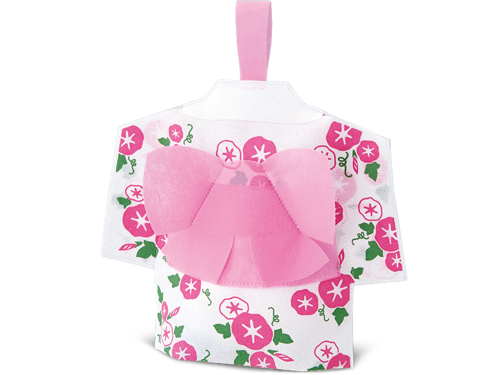 ゆかたの形の可愛らしい不織布バッグです。初夏から残暑まで使える点もおすすめ。日本ならではの夏の演出ができる、人気のアイテムです。
