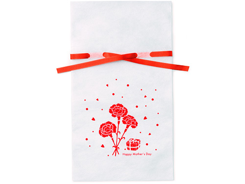 平袋タイプの不織布バッグ。カジュアルにアレンジしたカーネーション柄は、アットホームな母の日ギフトの演出にぴったりです。