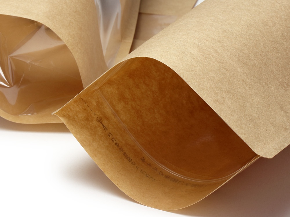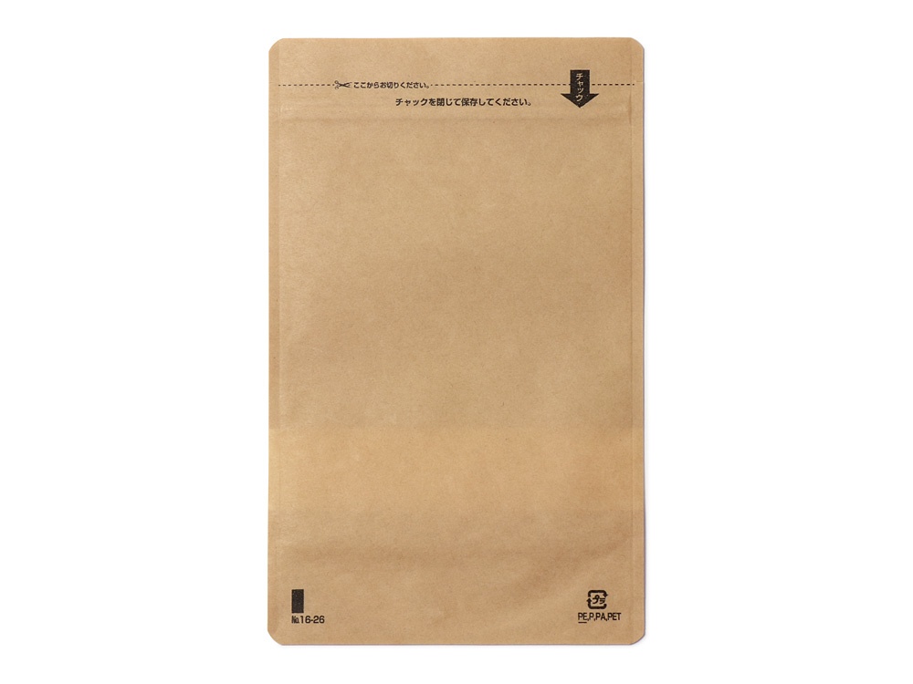 - 未晒クラフト紙を使用したスタンドチャック袋で、自然な風合いの演出が可能です。