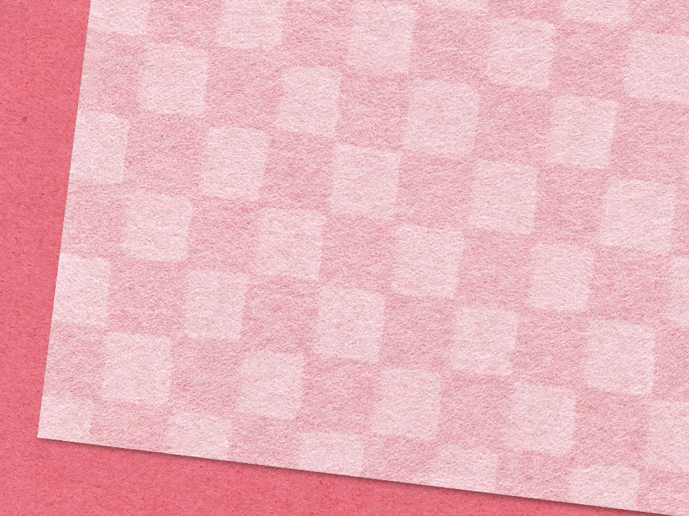 落ち着いた色目の和紙の表面に、透け感のある市松模様のレーヨン紙を貼り合わせています。表と裏で違った印象ですので、縁を折り返して見せる使い方もオススメです。
