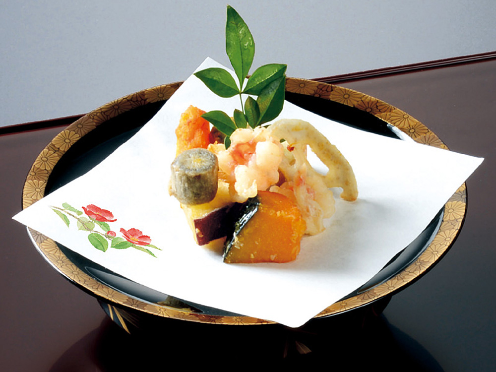 四季折々の草木がプリントされた耐油性の敷紙。お料理に敷くだけで気軽に季節感のある盛付けを演出できます。