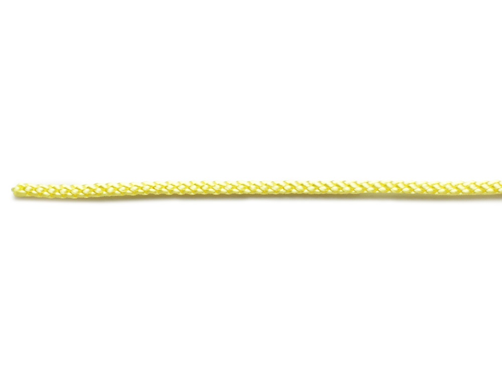 ひかえめな光沢が美しい、上品な印象の江戸打紐です。直径2mmの使いやすい太さ。発色のよい黄色はパッケージのアクセントに最適です。