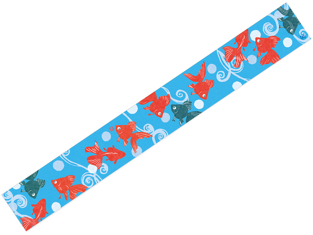 金魚の中でも人気の高い琉金を描いた帯紙「りゅうきん」。キョロキョロしながら水の中を漂う姿が愛らしい帯紙です。