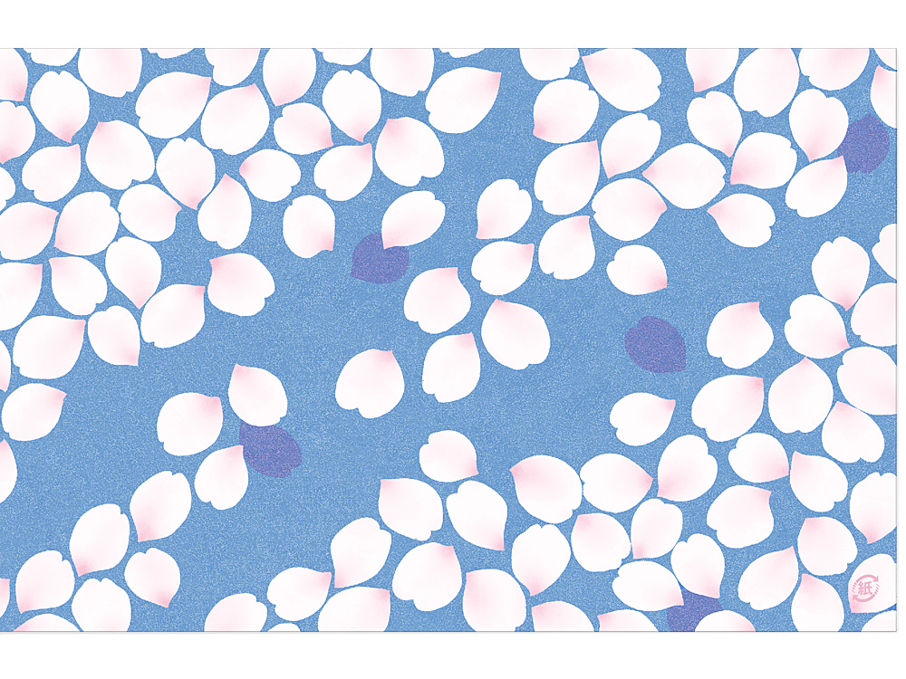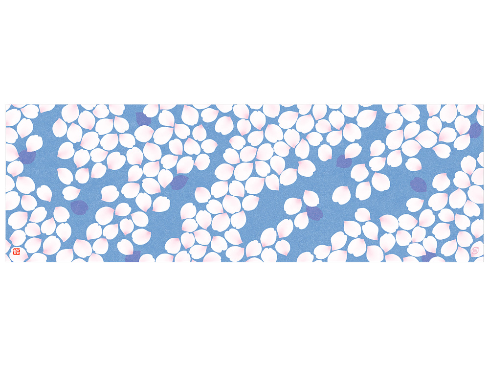 水面に浮かぶ無数の花びらが繋がったり離れたりしながら漂う様子を描いた、勝藤屋オリジナル掛紙です。
