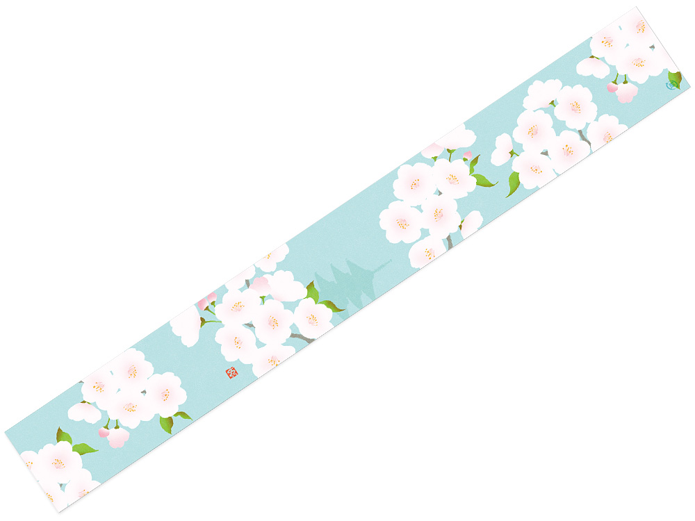 花付きのよい里桜をモチーフにした、勝藤屋オリジナルの帯紙です。五重塔のある景色を取りこんだ、どこか懐かしく情緒的な雰囲気です。