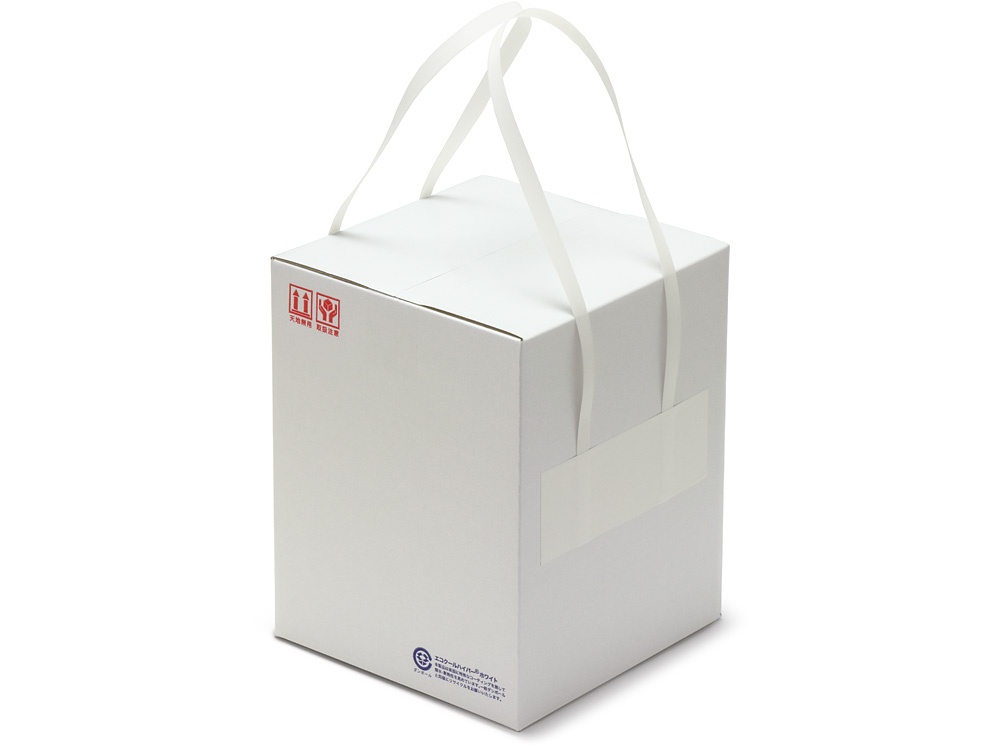 ハンドル部分の長さが長いので、外寸:幅が大きな保冷段ボールにご使用いただけます。写真のように、箱の幅に応じて持ち易い長さになるよう貼る位置を上下に調節してください。