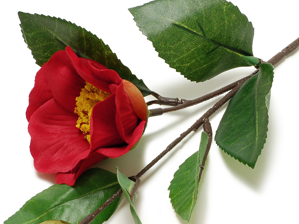 冬の花を代表する椿の造花です。可憐で上品な花が、冬のディスプレイに彩りを添えてくれます。