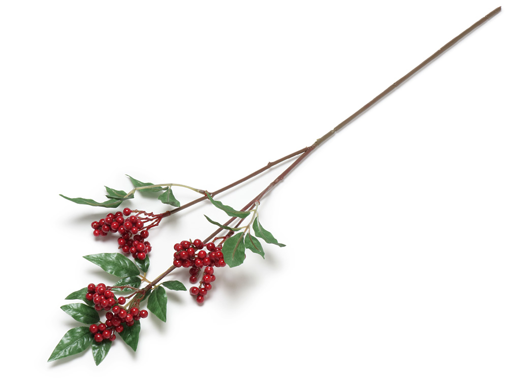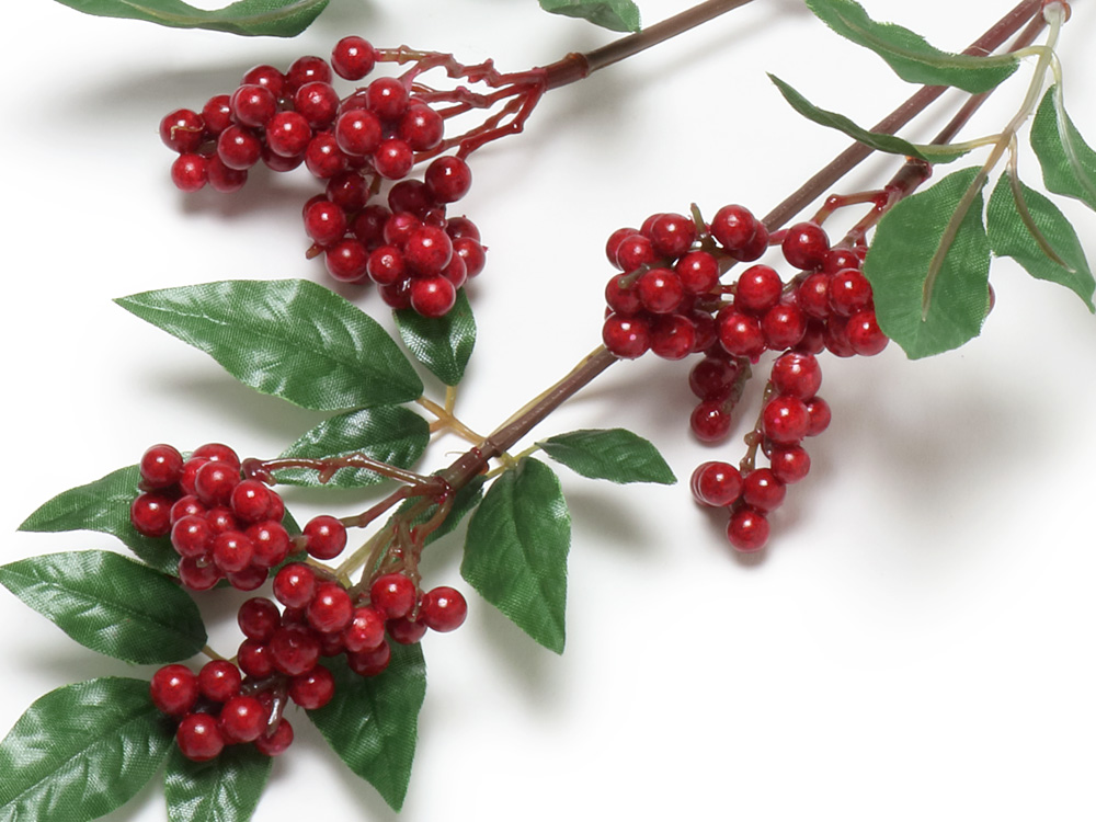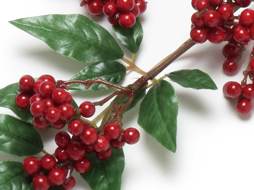 晩秋から初冬にかけて赤い実をつける南天の造花です。鮮やかな赤い実の色がよく映えます。