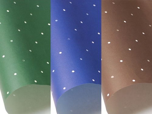 小さなドットが並んだシックで可愛らしい包装紙の取り扱いをはじめます。グリーン、ブルー、ブラウン、深みのある3色展開です。