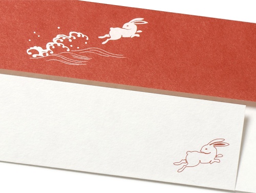 紙の風合いと、素朴で愛らしい絵柄が特徴の片折シリーズの箸紙『波兎・千鳥』をリニューアルしました。べんがら色のような赤を基調とした『波兎』と紺色を基調とした『千鳥』。旧品の資材価格高騰のため、材料を見直し同価格でのご提供が可能となリました。