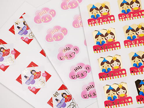 昨年に母の日などの少量パックシールを販売して好評だったので、今回はひな祭り用の新しいシールをいくつか仕入れました。24片から40片の少量パックですのでお気軽にお使いいただけます。